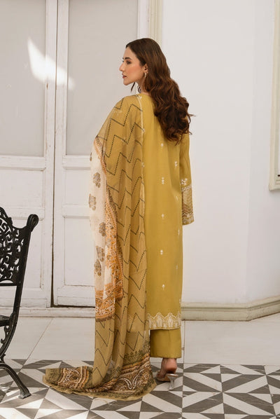 Liliana Luxury Lawn 24 Talin Faiza Saqlain 3 piece Stitched Suit (Yellow)