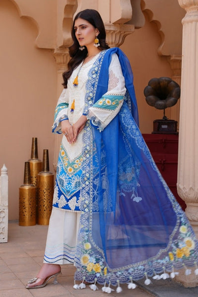 Qaus-e-Qaza Eid Collection 3Piece Stitched Suit (Electric Blue)