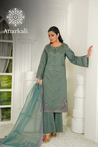 Qaus-e-Qaza Eid Collection 3Piece Stitched Suit (Laurel Green)