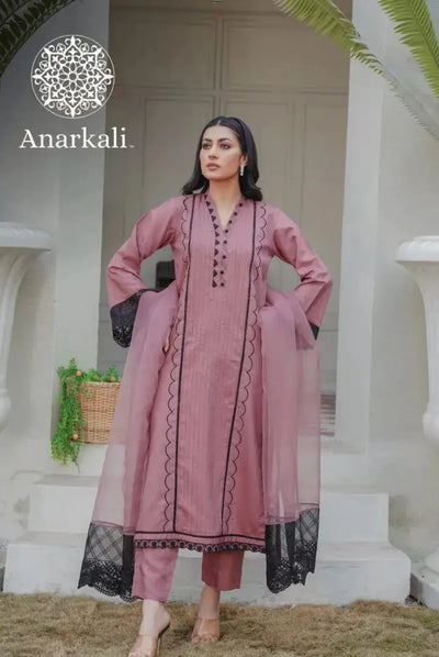 Qaus-e-Qaza Eid Collection 3Piece Stitched Suit (Mauve Pink)