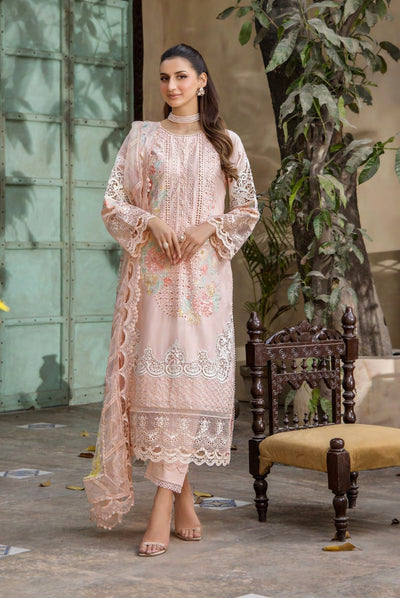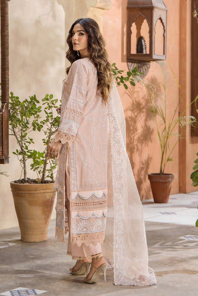3 Piece Stitched Luxury Lawn Embroidered Suits Collection By Eshaisha - PEACH BLOSSOM