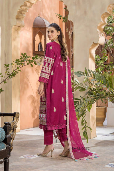 3 Piece Stitched Luxury Lawn Embroidered Suits Collection By Eshaisha - VELVET ROSE