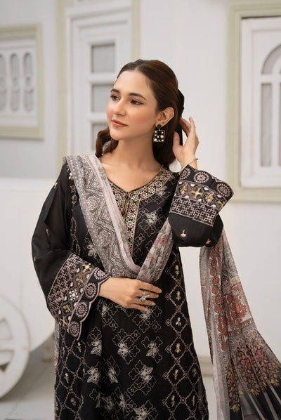 Inej By Usama Sidhu 3 Piece Stitched Embroidered Lawn Suit - Black