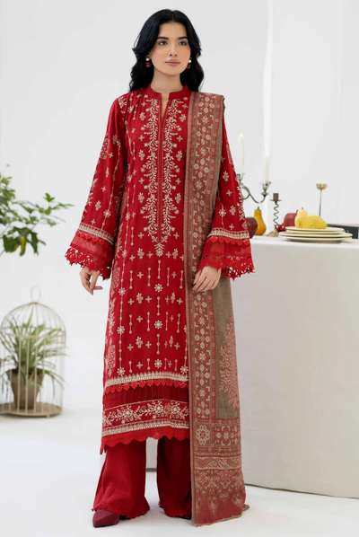 3 Piece Stitched EMBROIDERED PEACH LEATHER WITH PURE JECQUARD WOOL SHAWL ZEINA by JOHRA JW-370