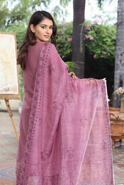 3 Piece Stitched Digital Printed Embroidered Lawn Suit From Zara '25 Collection - PURPLE GOWN