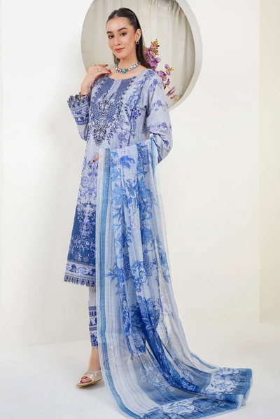 3 Piece Stitched Digital Printed Embroidered Lawn Suit From Zara '25 Collection - SONIC BLUE