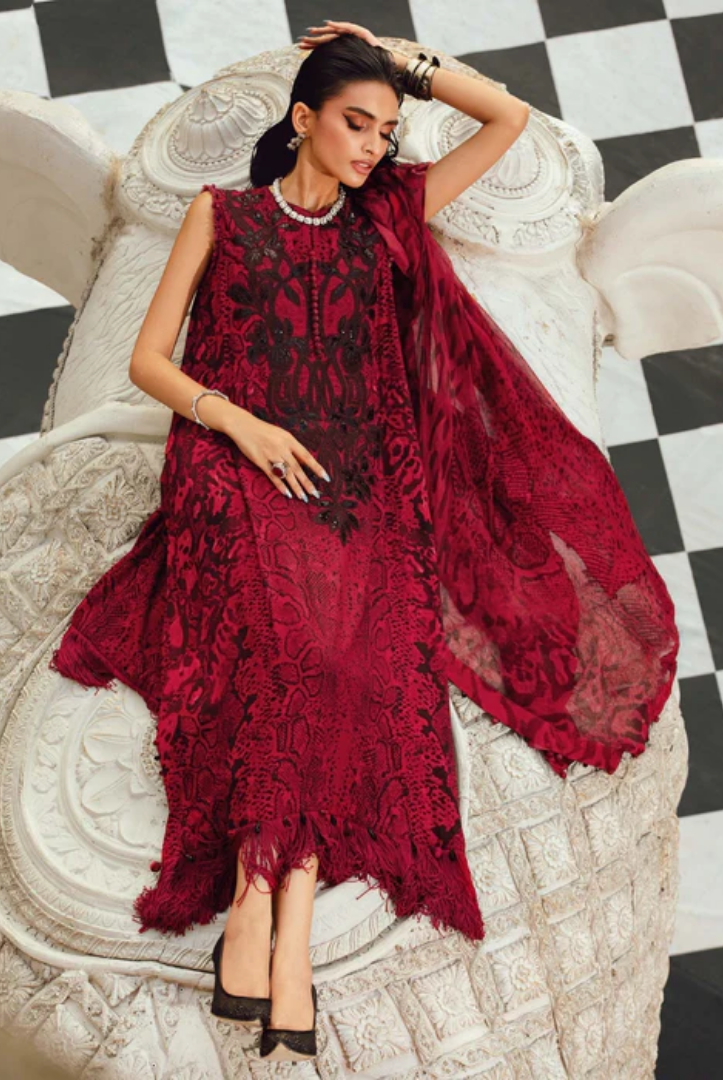 3 Piece Stitched Embroidered Linen Rani Mahal by Maria B M prints Fall Edit'25 Winter Collection comes with:
